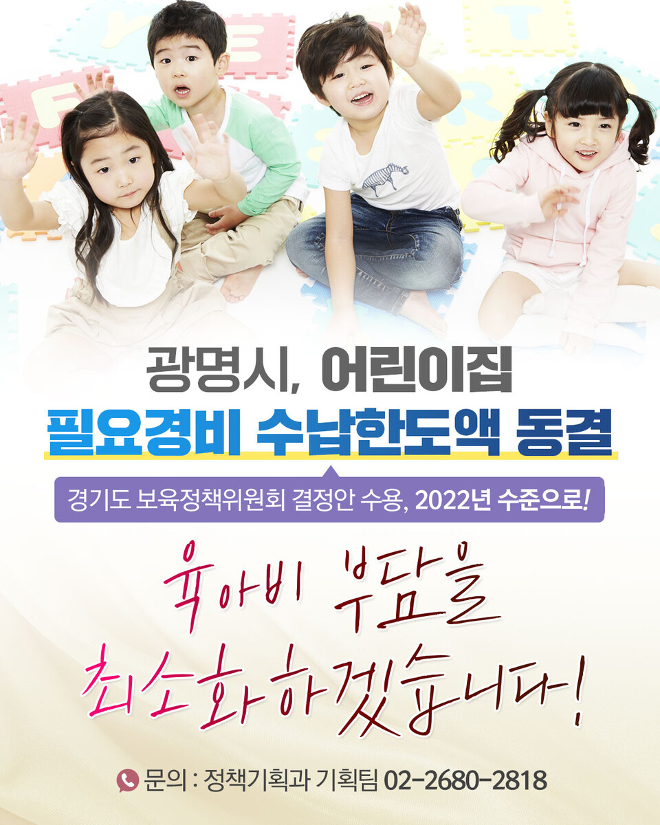 ±¤¸í½Ã(½ÃÀå ¹Ú½Â¿ø)´Â ±¤¸í½ÃÀ°¾ÆÁ¾ÇÕÁö¿ø¼¾ÅÍ(¼¾ÅÍÀå ¼ÛÁ¤)¿Í ÀÌ´Þ 13Àϰú 16ÀÏ ÀÌÆ²¿¡ °ÉÃÄ °ü³» ¾î¸°ÀÌÁý ¿øÀå ¹× È¸°è ´ã´çÀÚ¸¦ ´ë»óÀ¸·Î ¡®¾î¸°ÀÌÁýÀÇ ÇÕ¸®ÀûÀÎ À繫ȸ°è °ü¸®±³À°¡¯À» ½Ç½ÃÇÑ´Ù.À̹ø ±³À°Àº ..