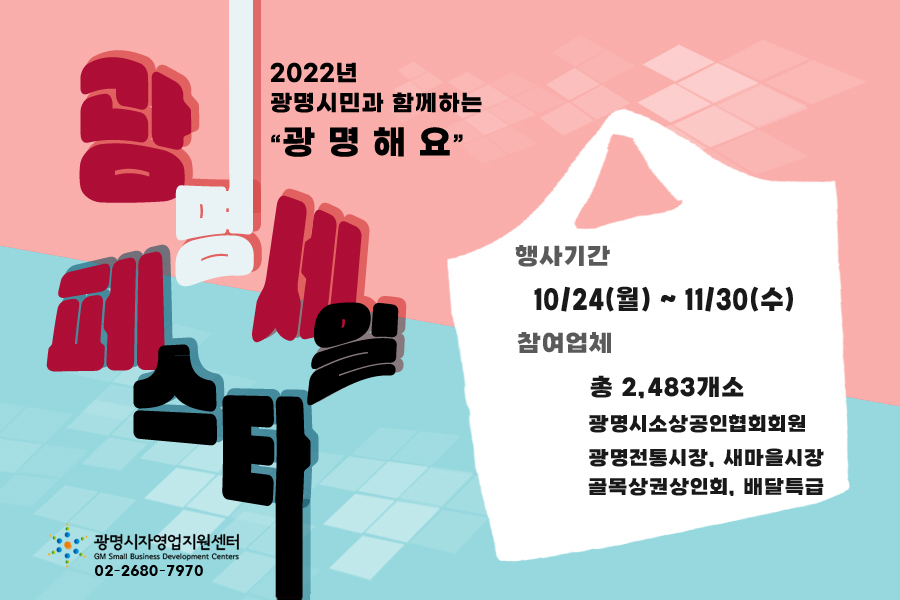 2022³â ±¤¸í½Ã¹Î°ú ÇÔ²²ÇÏ´Â "±¤¸íÇØ¿ä"¡Û Çà»ç±â°£ : 2022.10.24.(¿ù)~11.30.(¼ö)¡Û Âü¿©¾÷ü : ÃÑ 2,483°³¼Ò- ±¤¸í½Ã¼Ò»ó°øÀÎÇùȸȸ¿ø, ±¤¸íÀüÅë½ÃÀå, »õ¸¶À»½ÃÀå, °ñ¸ñ»ó±Ç»óÀÎȸ, ¹è´ÞƯ±Þ¡Û ¹®ÀÇ : ±¤¸í½ÃÀÚ¿µ..