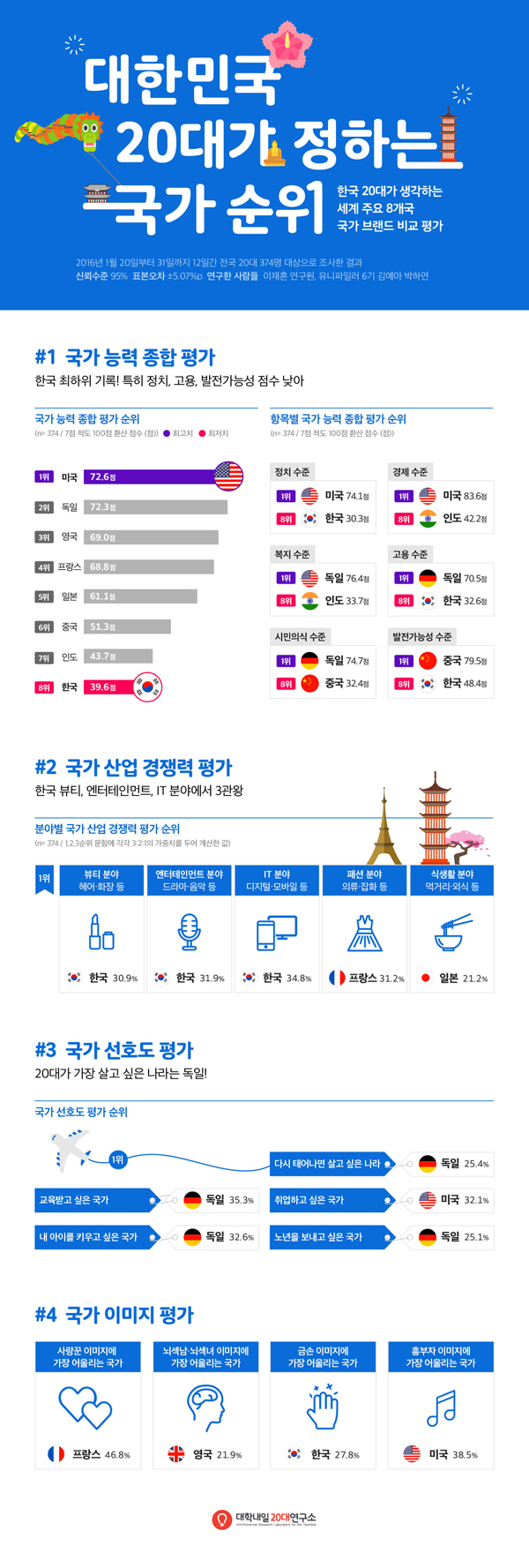 ´ëÇѹα¹ 20´ë ¡°µ¶ÀÏ¿¡¼ ´Ù½Ã ž°í ½Í´Ù¡± Çѱ¹, ±¹°¡ ´É·Â Á¾ÇÕ Æò°¡ ¼¼°è ÁÖ¿ä 8°³±¹ Áß ÃÖÇÏÀ§ Çѱ¹, Á¤Ä¡(30.3Á¡), °í¿ë(32.6Á¡), ¹ßÀü °¡´É¼º(48.4Á¡) Æò°¡¿¡¼ ²ÃÂî ÇÁ¶û½º´Â »ç¶û²Û, ¿µ±¹Àº ³ú¼½³²(³à)..